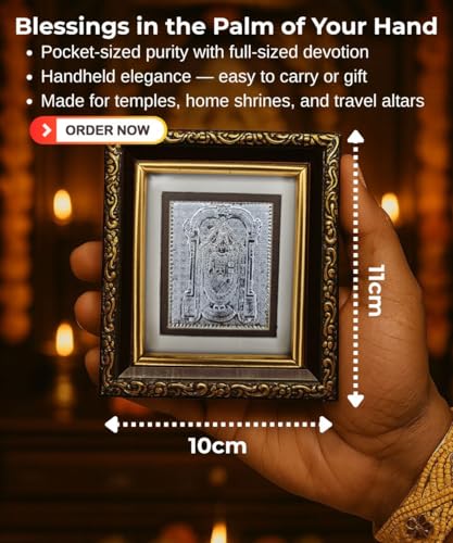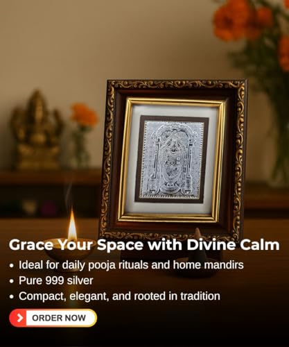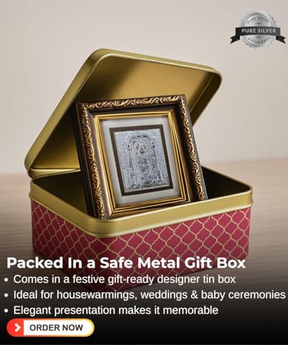 Add an aura of peace and tradition to your space with this beautifully crafted Pure 999 Silver Balaji Perumal Frame, housed in an ornate wooden frame. Whether you’re looking for a divine addition to your pooja room or a memorable gift for your loved ones, this compact yet premium silver photo frame is the perfect choice. It comes securely packed in a designer metal tin box, making it a ready-to-gift piece for festive occasions, weddings, housewarmings, and baby naming ceremonies. Intricately embossed, the silver Balaji Perumal design is a symbol of good fortune, prosperity, and new beginnings. Place it in your home mandir, gift it to your colleagues, or use it as a spiritual décor piece — this silver frame blends elegance with tradition effortlessly.
