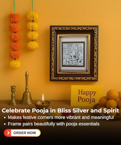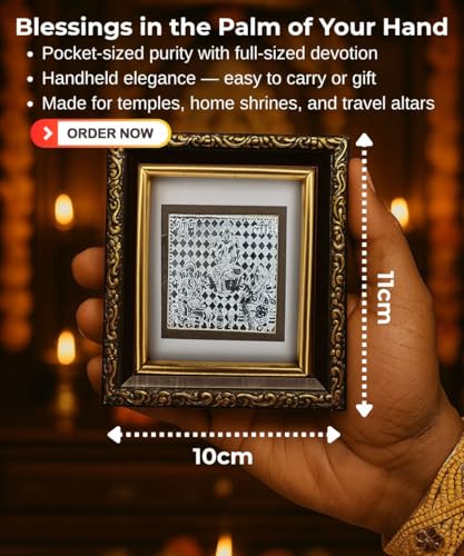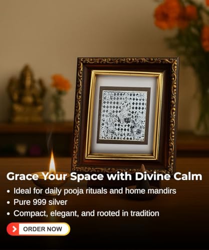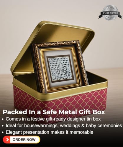 Add an aura of peace and tradition to your space with this beautifully crafted Pure 999 Silver Ganesh Saraswati Lakshmi Frame, housed in an ornate wooden frame. Whether you’re looking for a divine addition to your pooja room or a memorable gift for your loved ones, this compact yet premium silver photo frame is the perfect choice. It comes securely packed in a designer metal tin box, making it a ready-to-gift piece for festive occasions, weddings, housewarmings, and baby naming ceremonies. Intricately embossed, the silver Ganesh Saraswati Lakshmi design is a symbol of good fortune, prosperity, and new beginnings. Place it in your home mandir, gift it to your colleagues, or use it as a spiritual décor piece — this silver frame blends elegance with tradition effortlessly.